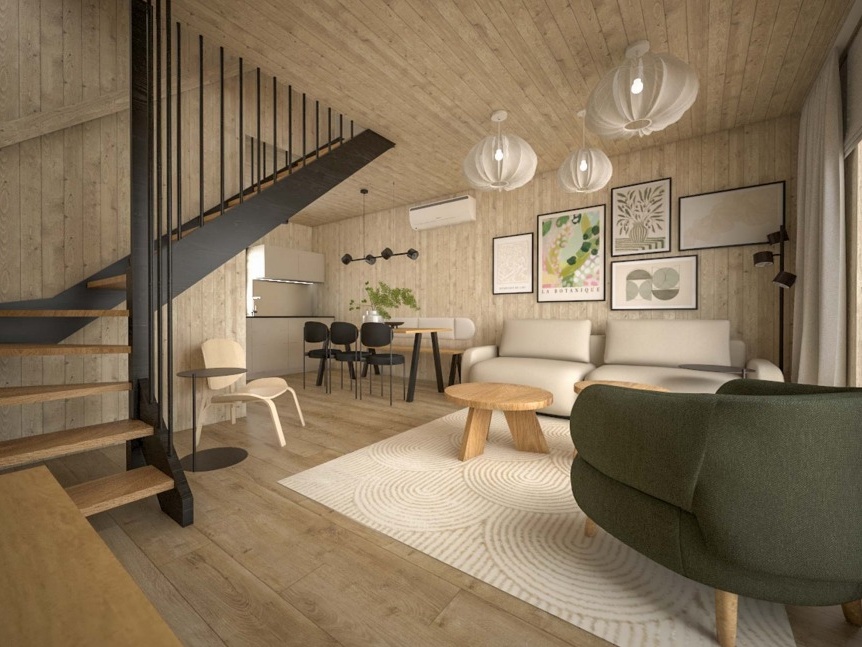 Projekt obejmuje 15 domów o powierzchni ok. 50 m² oraz dwa domy o powierzchni ok. 70 i 93 m2, każdy z własnym tarasem i ogródkiem, co stanowi doskonałą przestrzeń do relaksu i kontaktu z naturą.